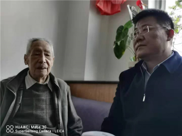 甘肅絲路布衣酒店管理有限公司董事長(zhǎng)魏永祥(右)與老人親切握手