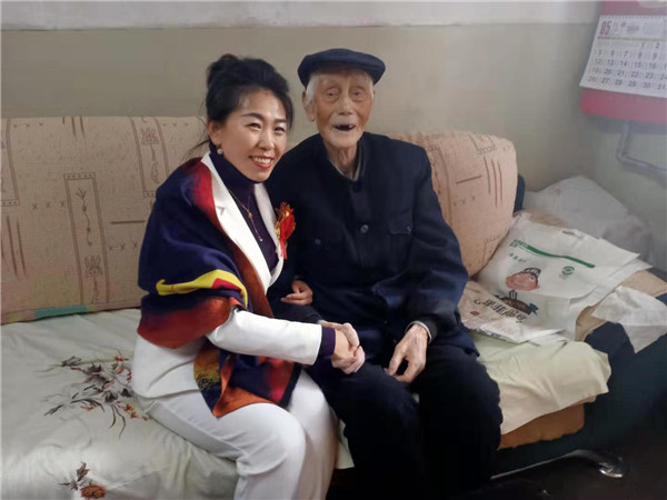 甘肅絲路布衣酒店管理有限公司董事長(zhǎng)魏永祥(左)與老人合影