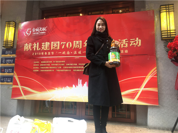 本次活動(dòng)由蘭州市城關(guān)區(qū)皋蘭路街道、張掖路街道大眾巷社區(qū)主辦,金城老碗牛肉面、特色炒面片舊大路店和大眾巷店承辦,民建蘭州市市委城關(guān)基層委員會(huì)、民建蘭州市城關(guān)基層委三總支、甘肅絲路布衣酒店管理有限公司協(xié)辦,于2019年12月19日上午11:00在金城老碗牛肉面、特色炒面舊大路店和大眾巷社區(qū)啟動(dòng),登門入戶慰問了兩個(gè)街道20余戶轄區(qū)百歲老人、退伍傷殘軍人、抗戰(zhàn)老兵、國(guó)家五一勞動(dòng)獎(jiǎng)獲得者以及貧困家庭。