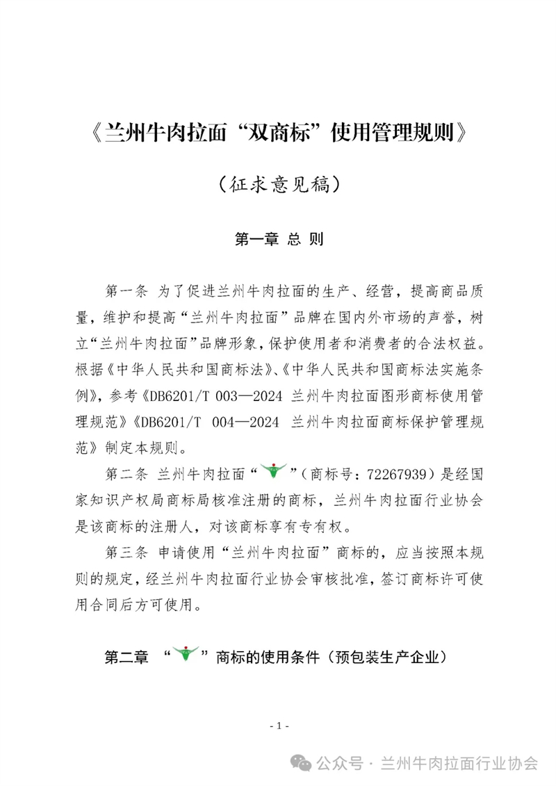 《蘭州牛肉拉面“雙商標”使用管理規(guī)則》征求意見稿發(fā)布